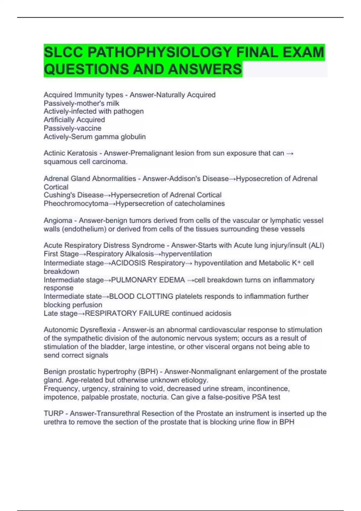 SLCC PATHOPHYSIOLOGY FINAL EXAM