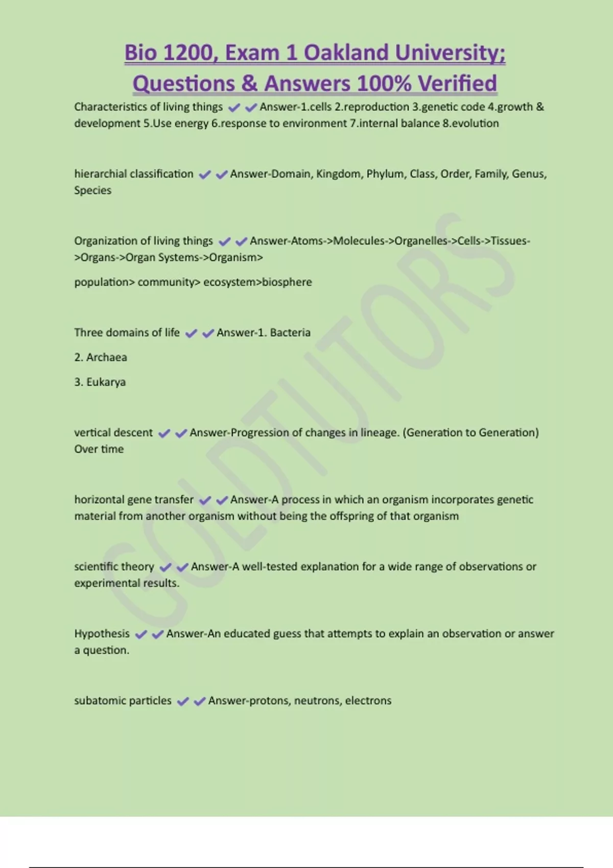 , Bio 1200, Exam 1 Oakland University;