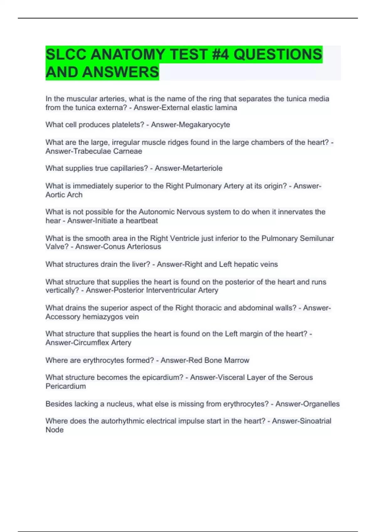 SLCC ANATOMY TEST #4 QUESTIONS AND ANSWERS