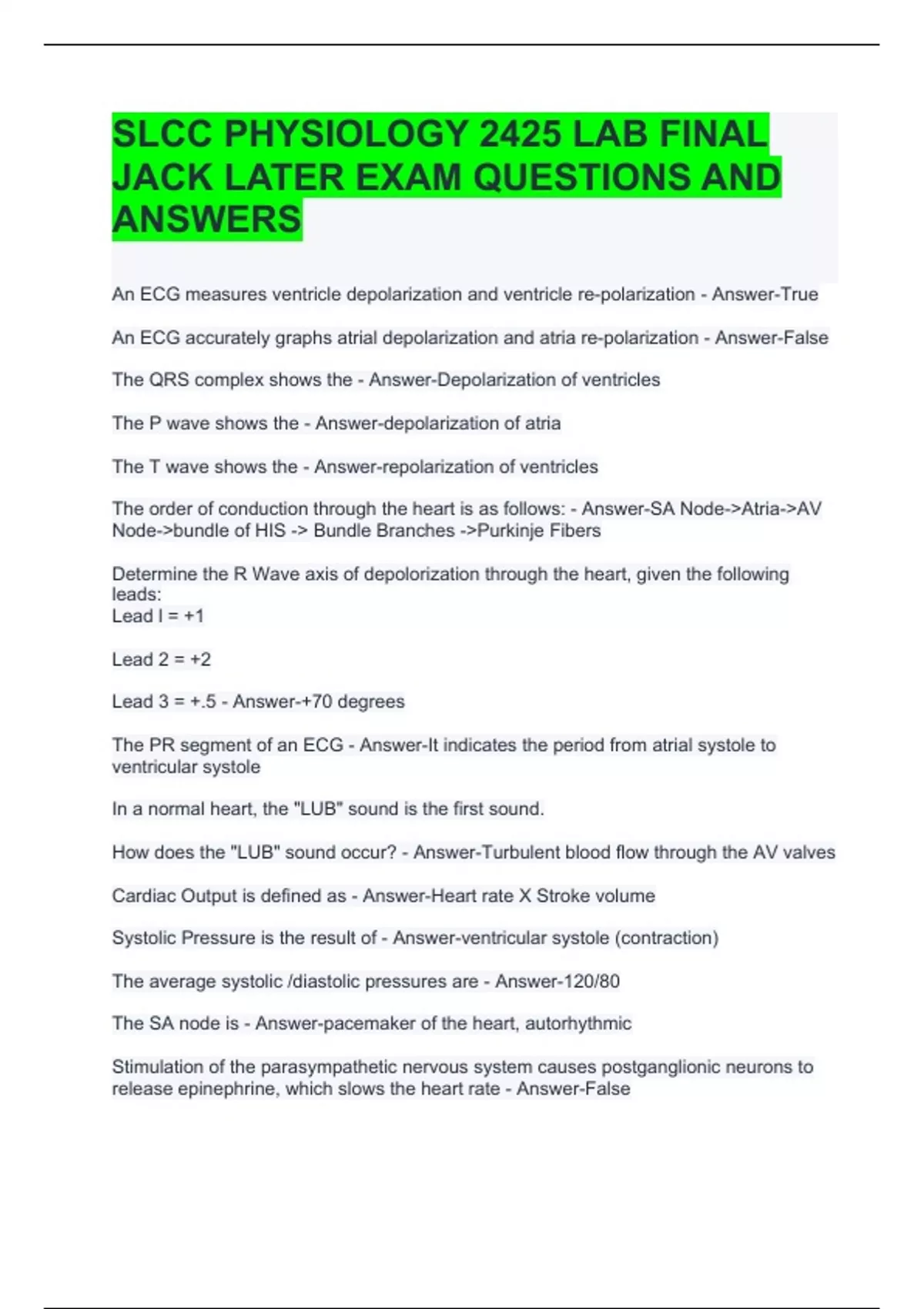 SLCC PHYSIOLOGY 2425 LAB FINAL JACK LATER EXAM QUESTIONS AND ANSWERS