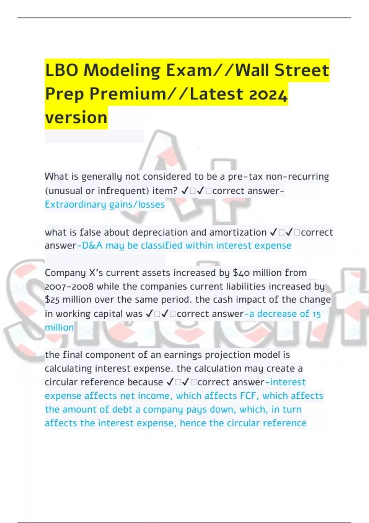 LBO Modeling Exam//Wall Street Prep Premium//Latest 2024 version