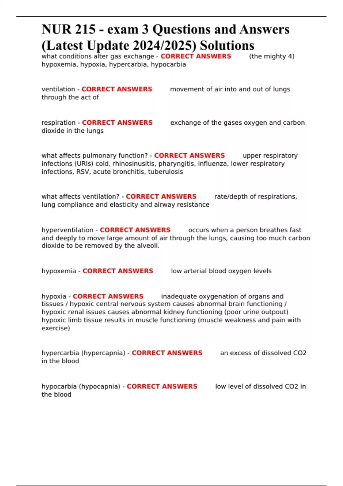 NUR 215 - exam 3 Questions and Answers