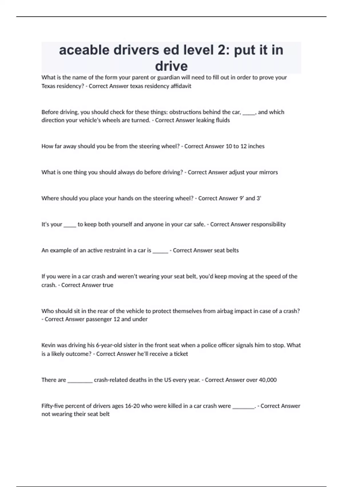 aceable drivers ed level 2: put it in drive