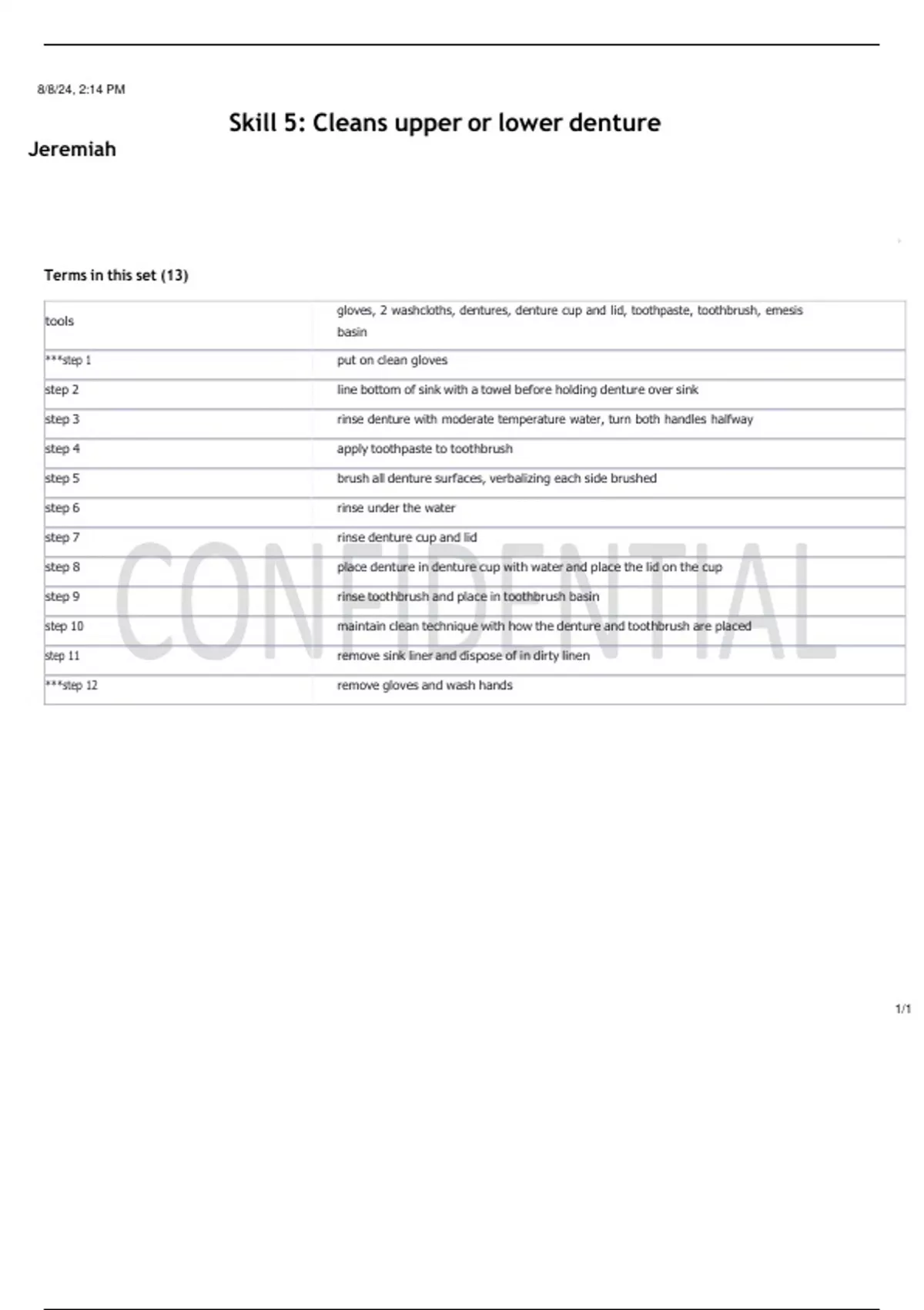 step 5 brush all denture surfaces, verbalizing each side brushed