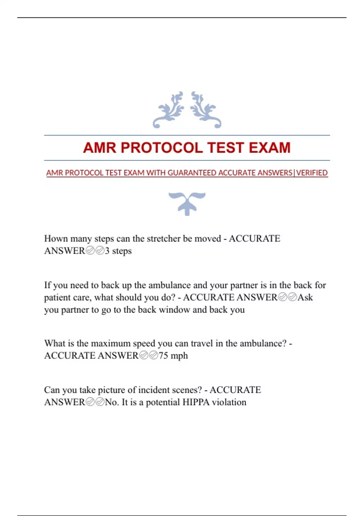 AMR PROTOCOL TEST EXAM WITH GUARANTEED ACCURATE ANSWERS|VERIFIED