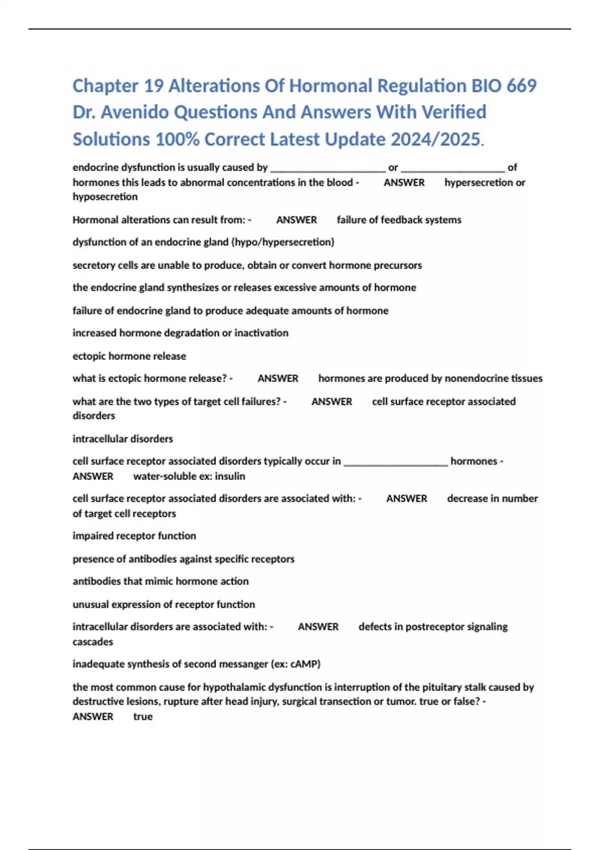 Chapter 19 Alterations Of Hormonal Regulation BIO 669