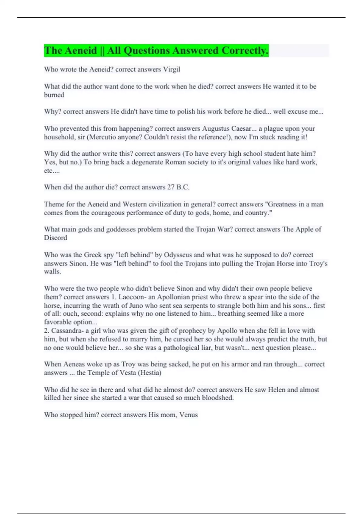 , What was Venus' prophecy for Aeneas? correct answers "Troy is doomed. Take your father and