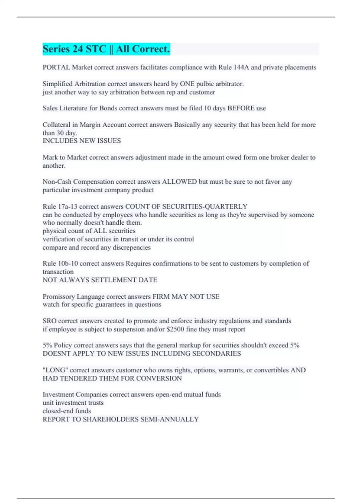 5% Policy correct answers says that the general markup for securities shouldn't exceed 5%