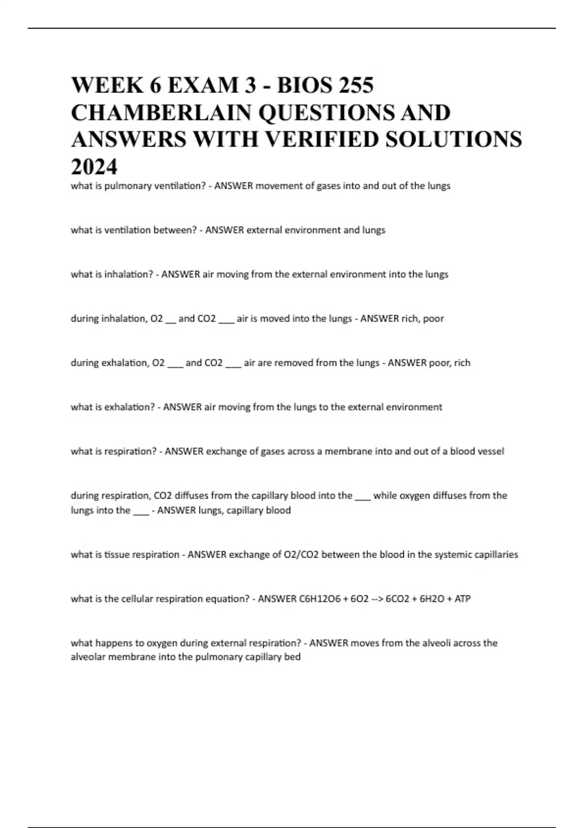 WEEK 6 EXAM 3 - BIOS 255 CHAMBERLAIN QUESTIONS AND ANSWERS WITH VERIFIED SOLUTIONS 2024