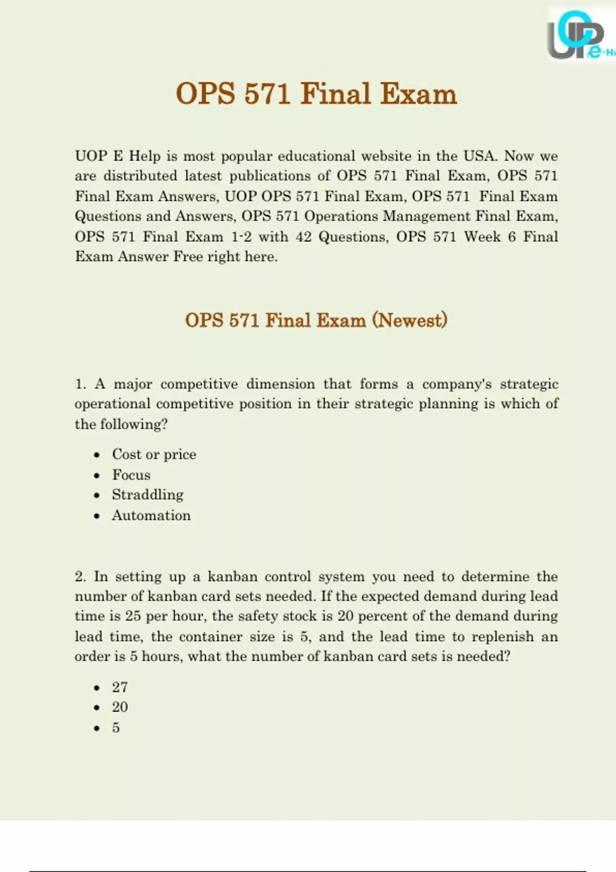 Questions and Answers, OPS 571 Operations Management Final Exam,