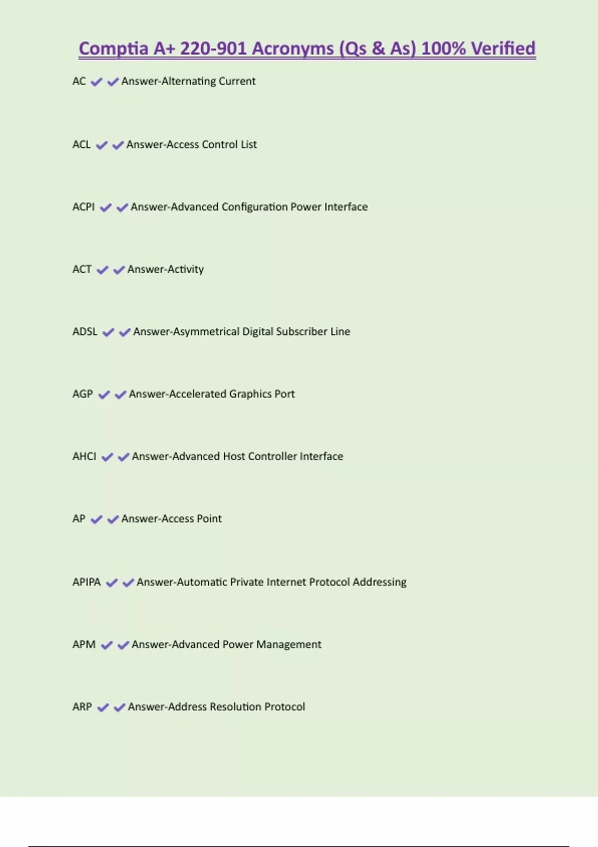 , Comptia A+ 220-901 Acronyms (Qs & As) 100% Verified