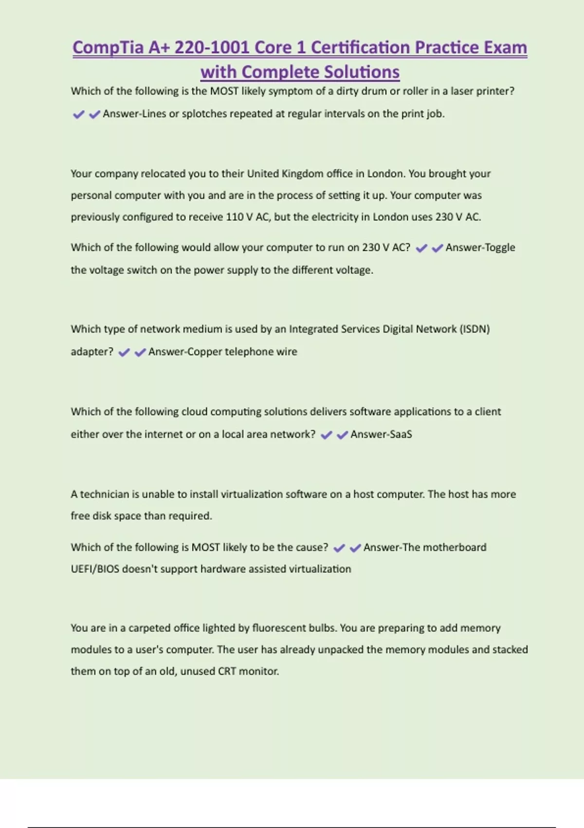 ,CompTia A+ 220-1001 Core 1 Certification Practice Exam