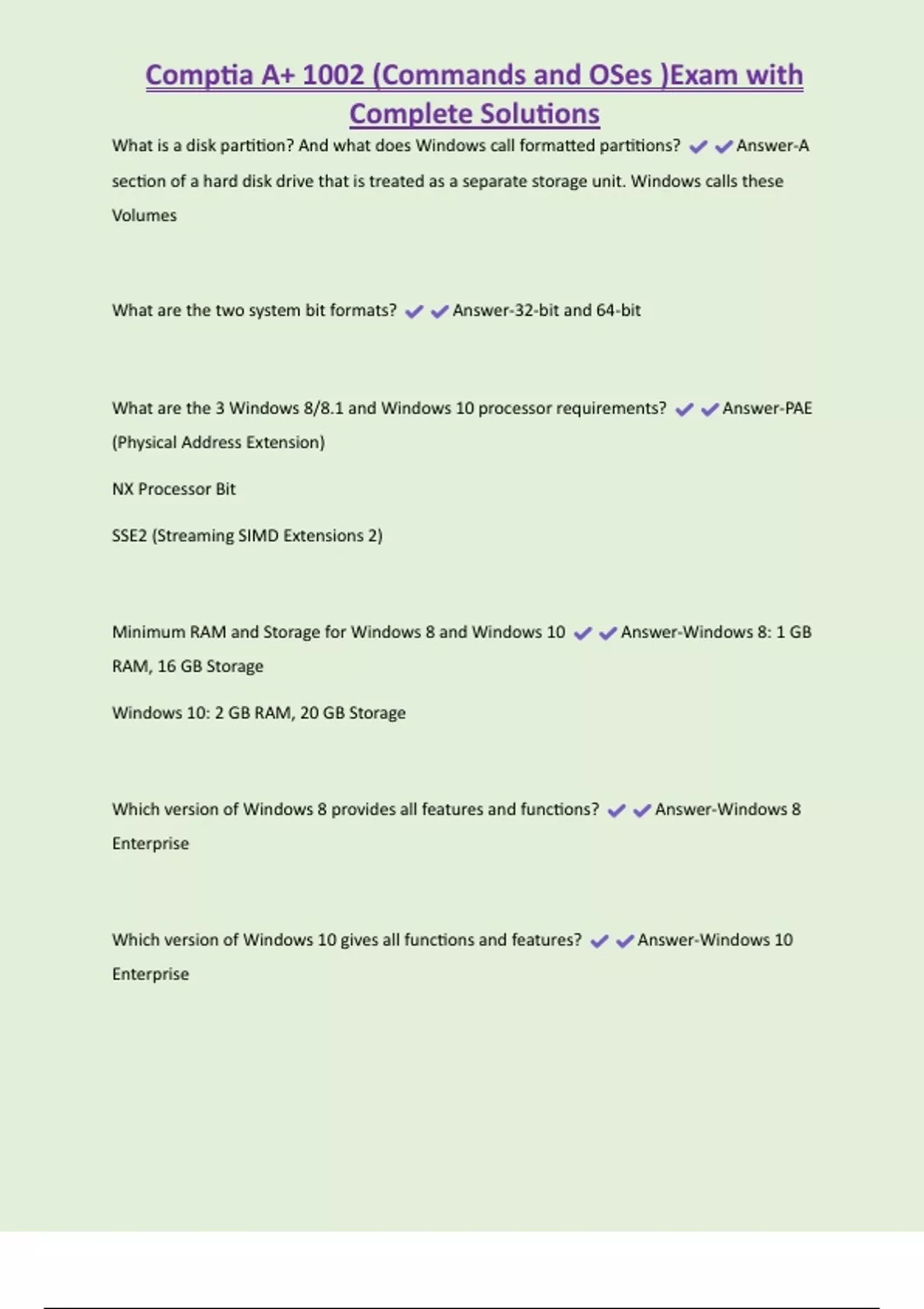 , Comptia A+ 1002 (Commands and OSes )Exam with