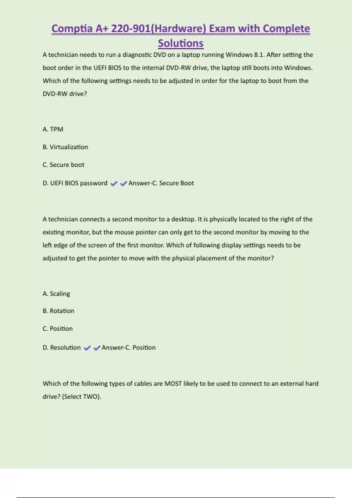 , Comptia A+ 220-901(Hardware) Exam with Complete