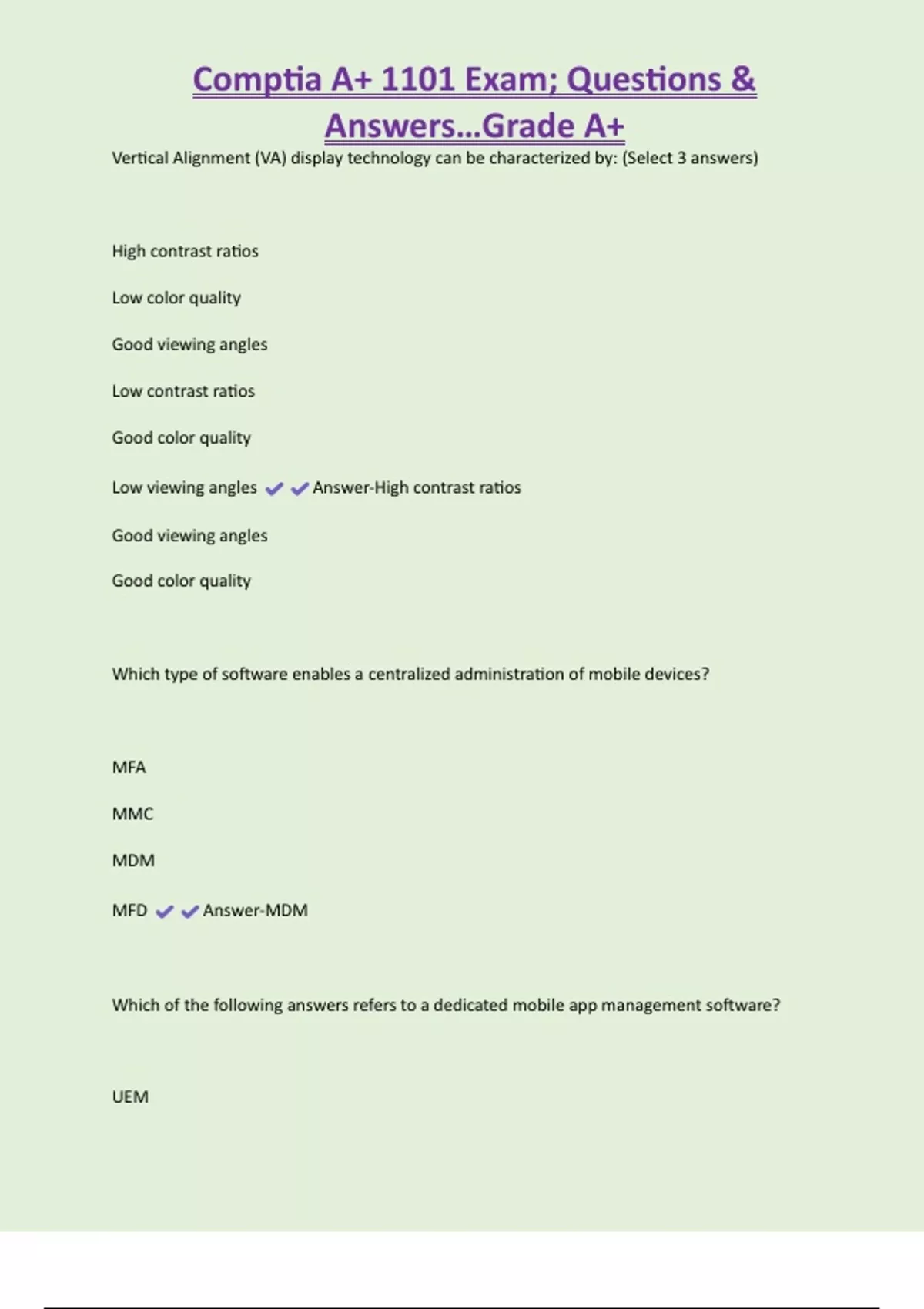 , Comptia A+ 1101 Exam; Questions &