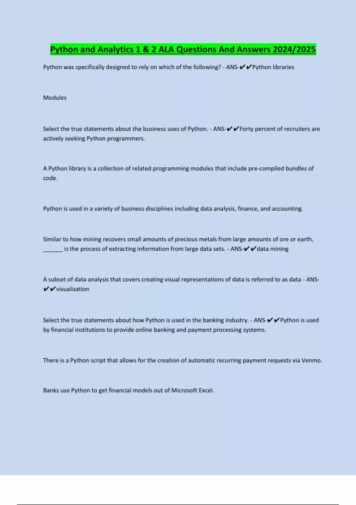 suitable for the automation of various tasks and processes. - ANS-✔✔Python