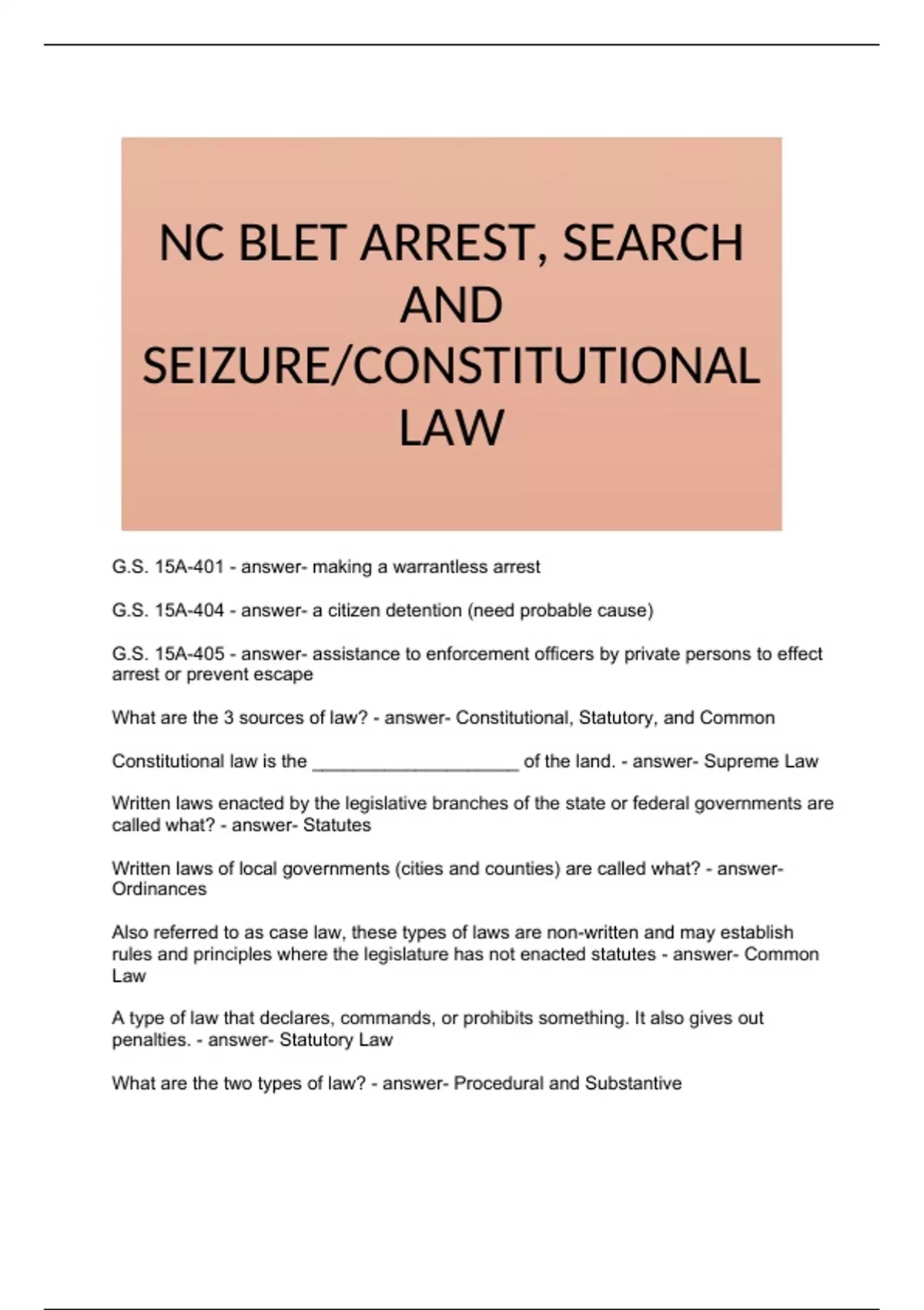 Constitutional law is the ____________________ of the land. - answer- Supreme Law