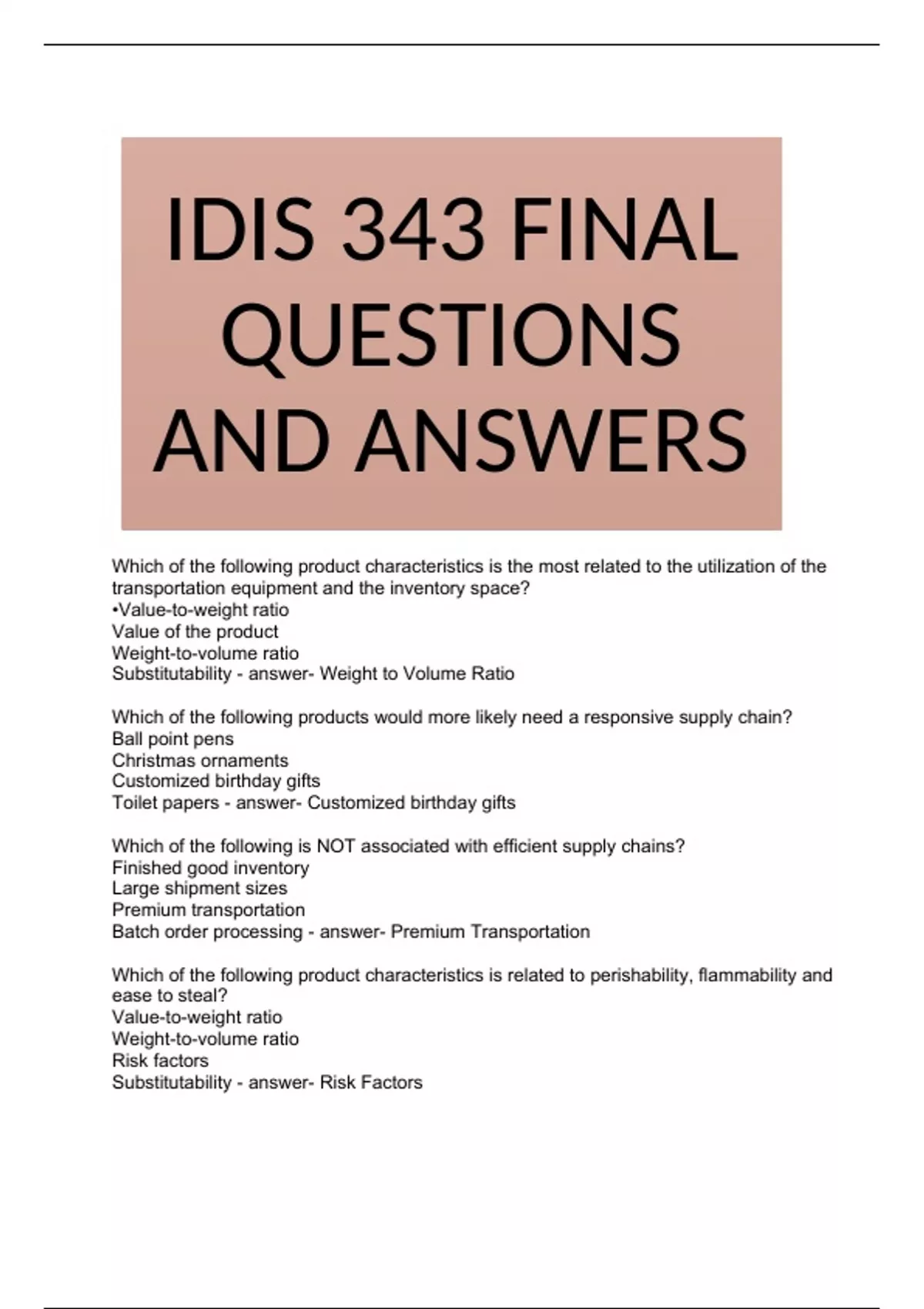Substitutability - answer- Weight to Volume Ratio