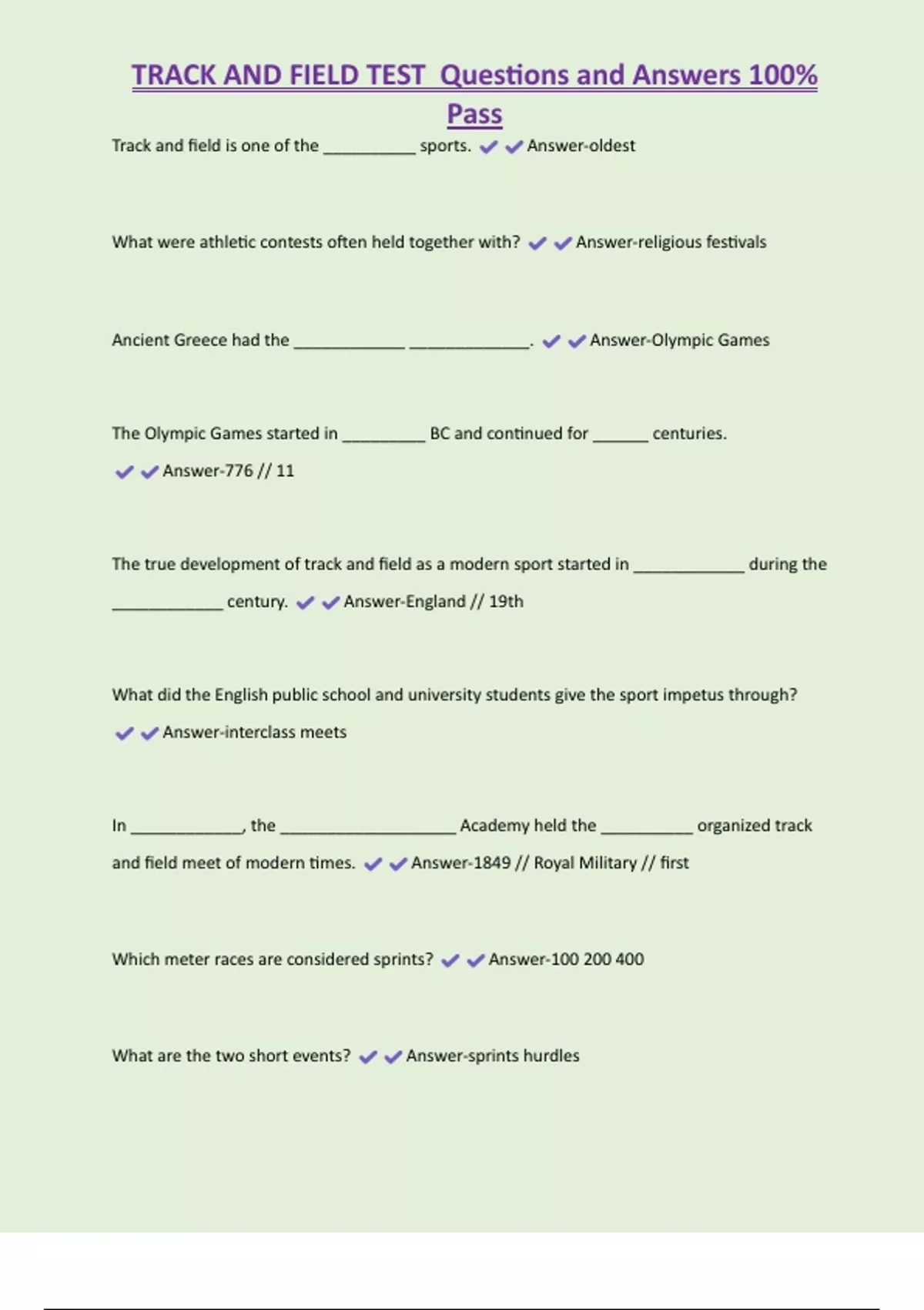 , TRACK AND FIELD TEST Questions and Answers 100%