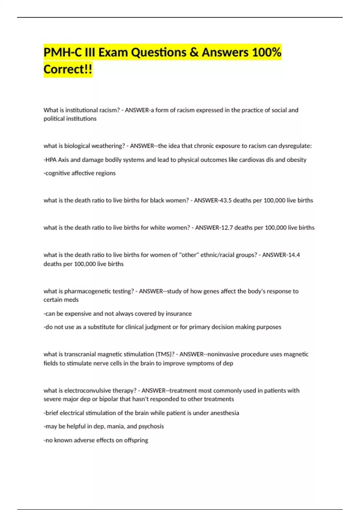 what is electroconvulsive therapy? - ANSWER--treatment most commonly used in patients with