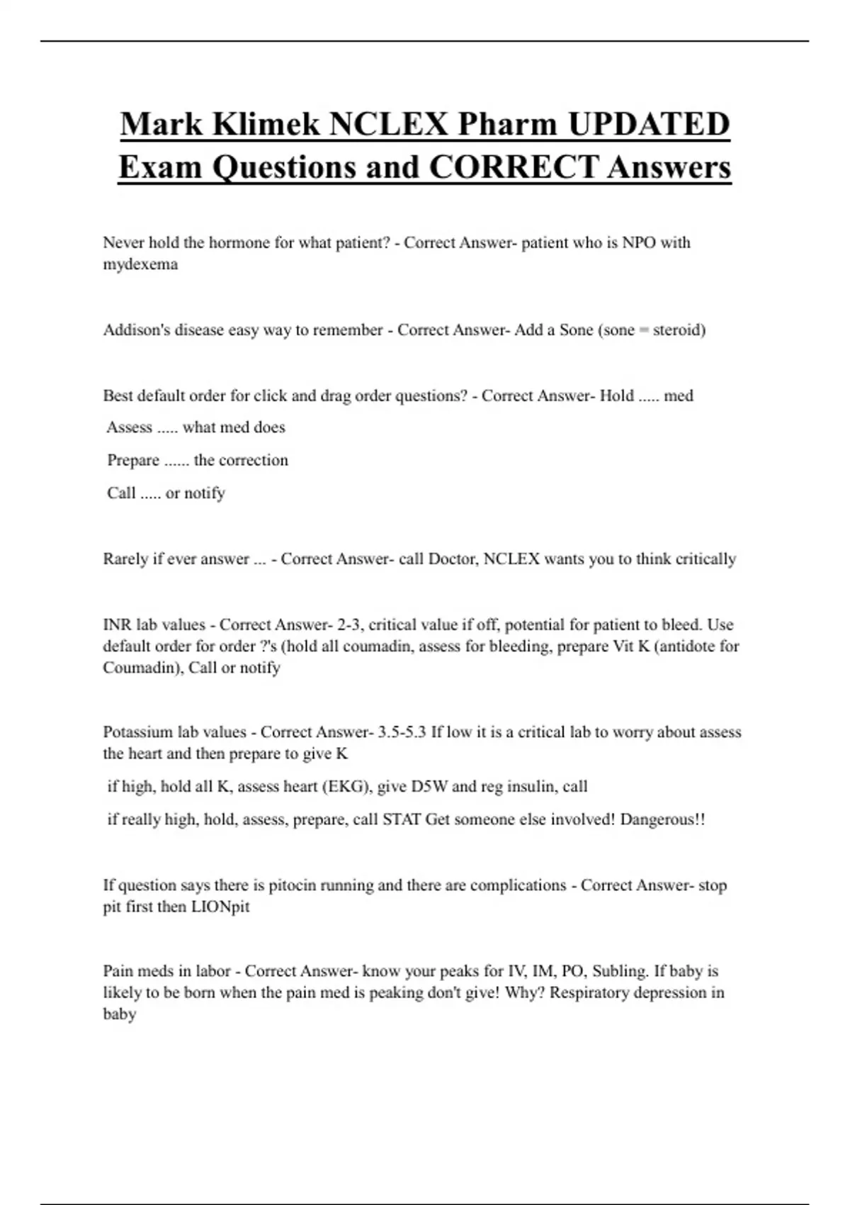 Rarely if ever answer ... - Correct Answer- call Doctor, NCLEX wants you to think critically