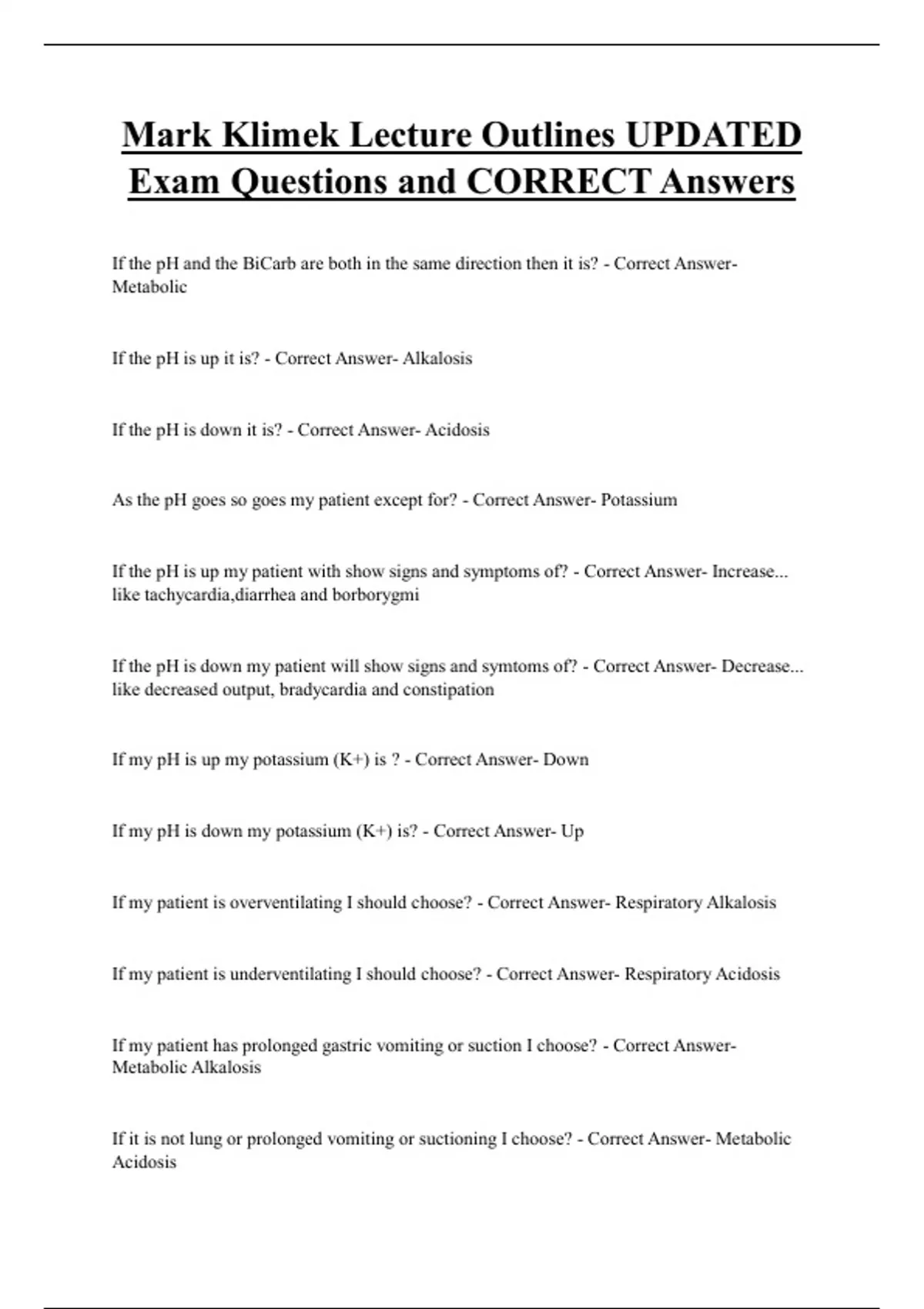 As the pH goes so goes my patient except for? - Correct Answer- Potassium