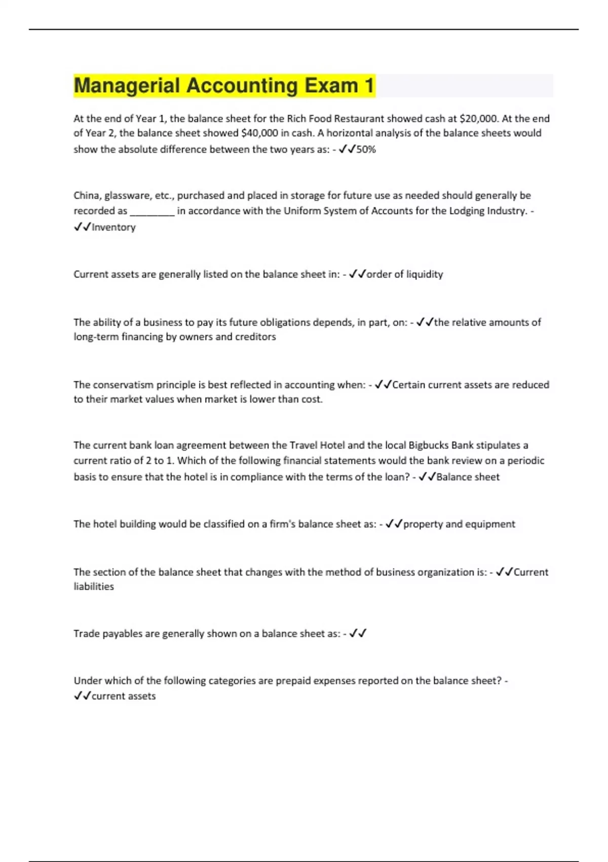 basis to ensure that the hotel is in compliance with the terms of the loan? - ✔✔Balance sheet