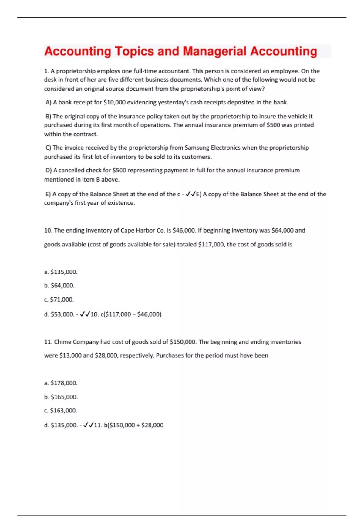 10. The ending inventory of Cape Harbor Co. is $46,000. If beginning inventory was $64,000 and