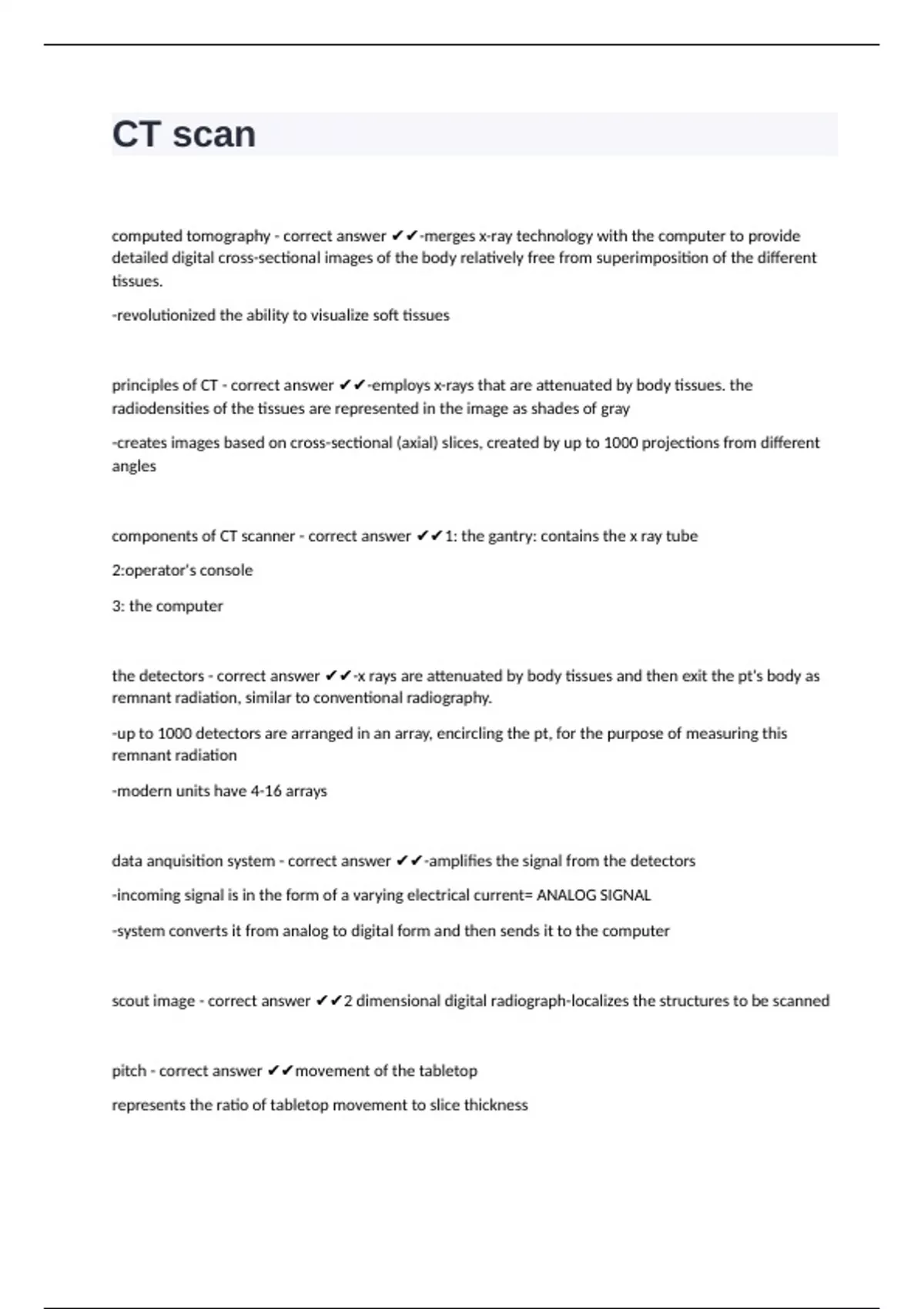 computed tomography - correct answer ✔✔-merges x-ray technology with the computer to provide