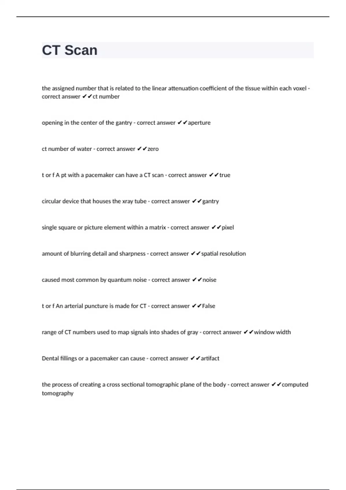 t or f An arterial puncture is made for CT - correct answer ✔✔False