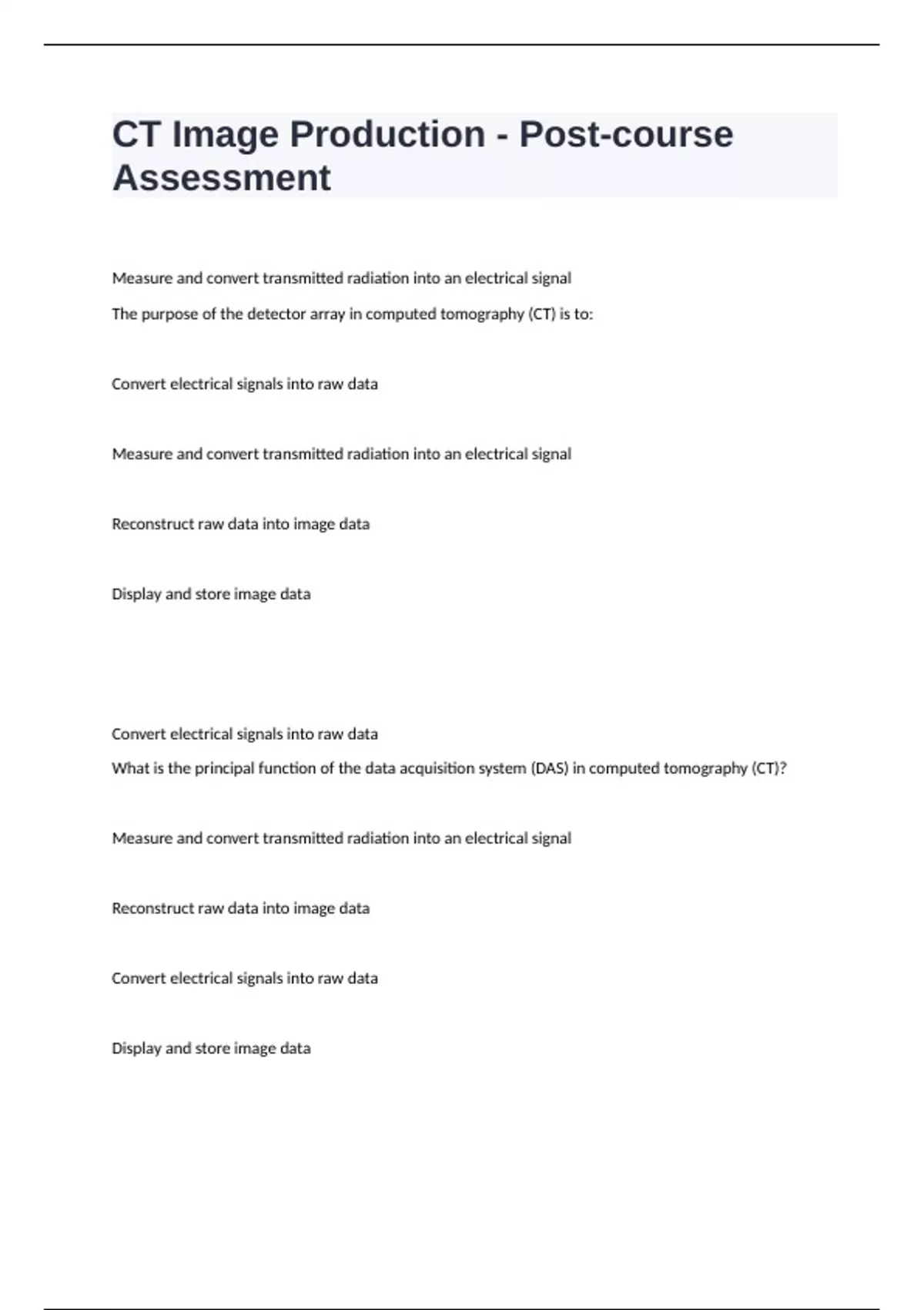 The patient's anatomy that is saved as raw data in the computed tomography (CT) system includes any