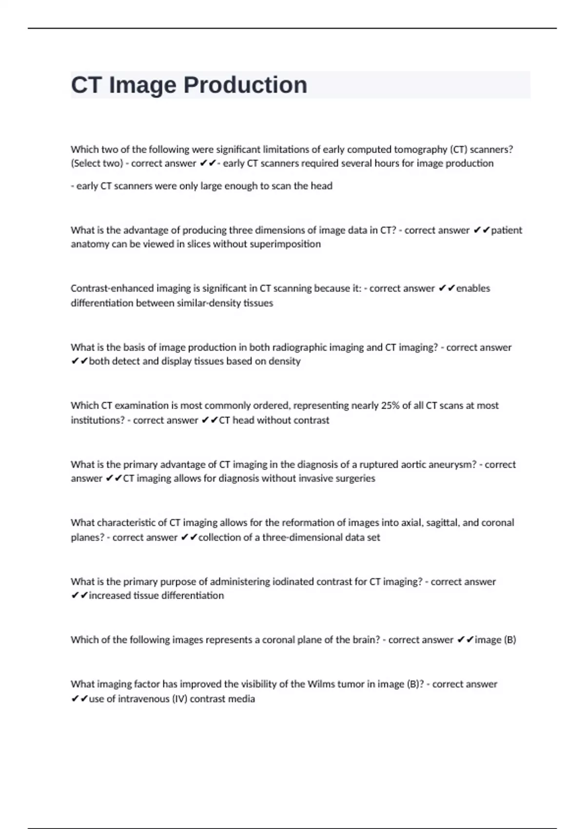 a CT image? - correct answer ✔✔a few milliseconds