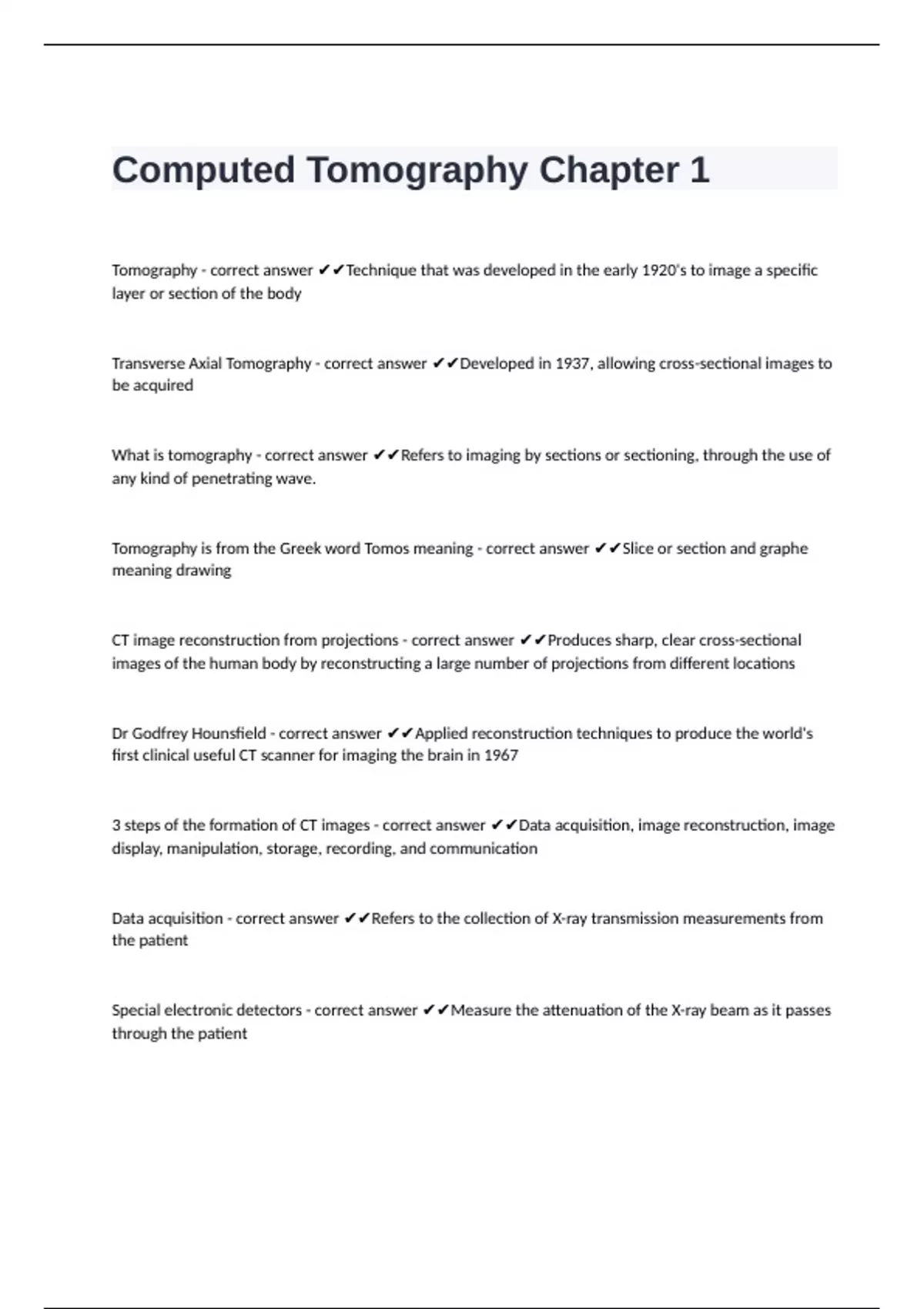 Transverse Axial Tomography - correct answer ✔✔Developed in 1937, allowing cross-sectional images to
