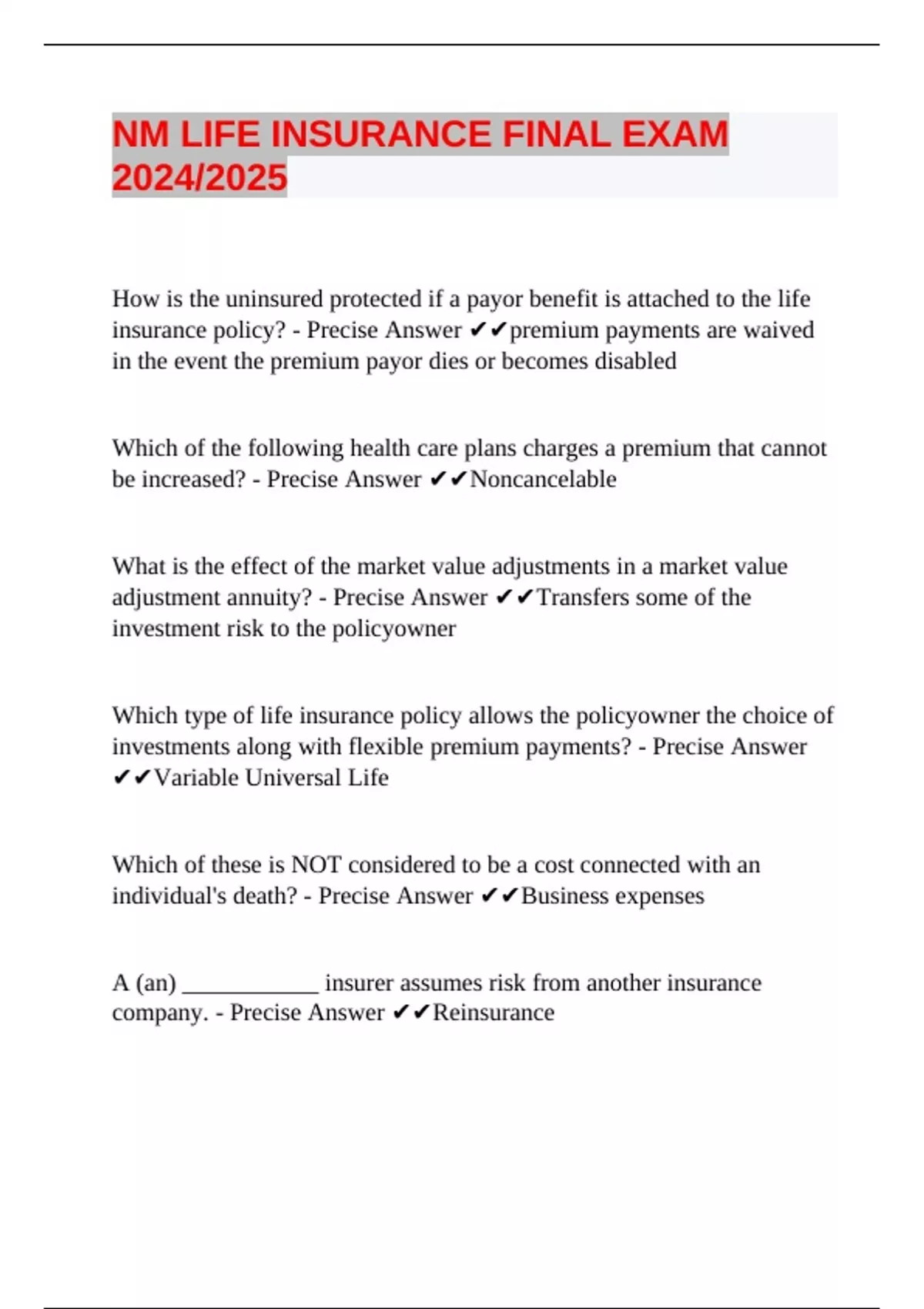 insurance policy? - Precise Answer ✔✔premium payments are waived