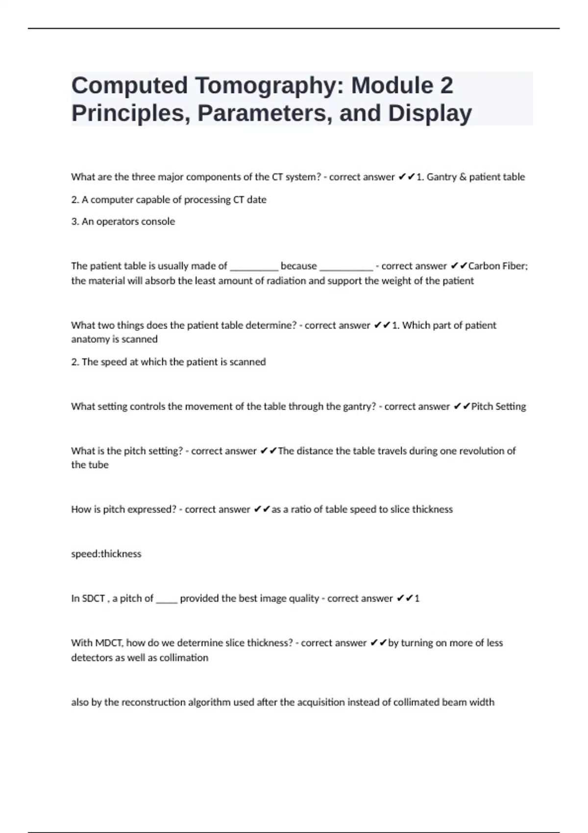 What are the three major components of the CT system? - correct answer ✔✔1. Gantry & patient table