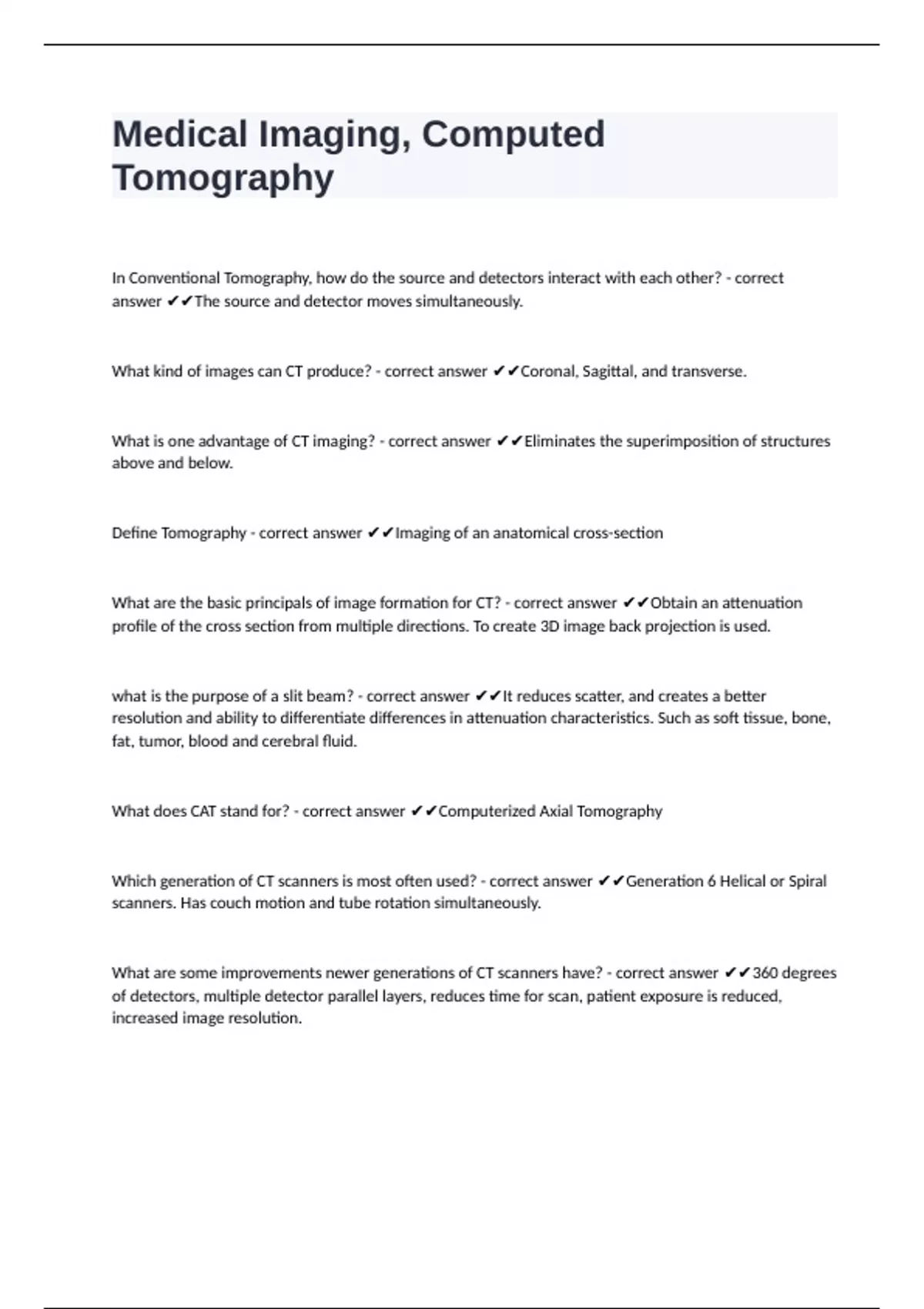 What does CAT stand for? - correct answer ✔✔Computerized Axial Tomography
