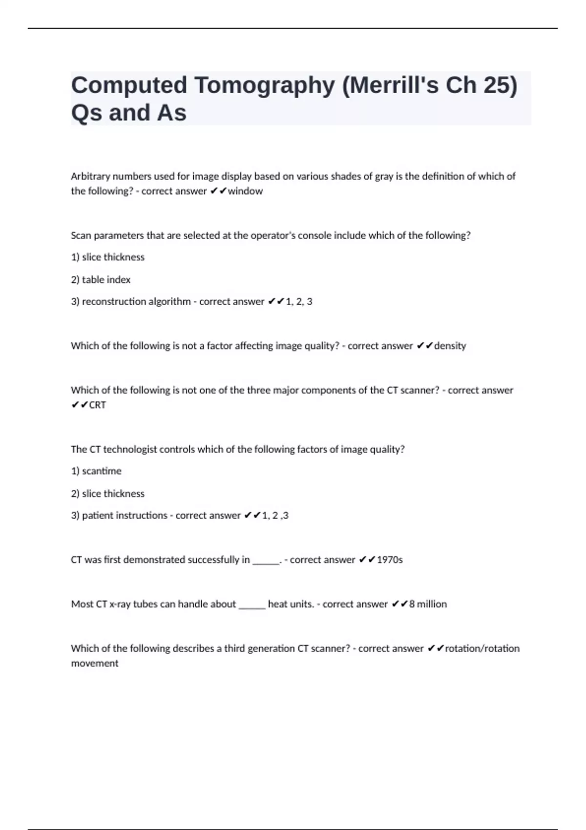 CT was first demonstrated successfully in _____. - correct answer ✔✔1970s