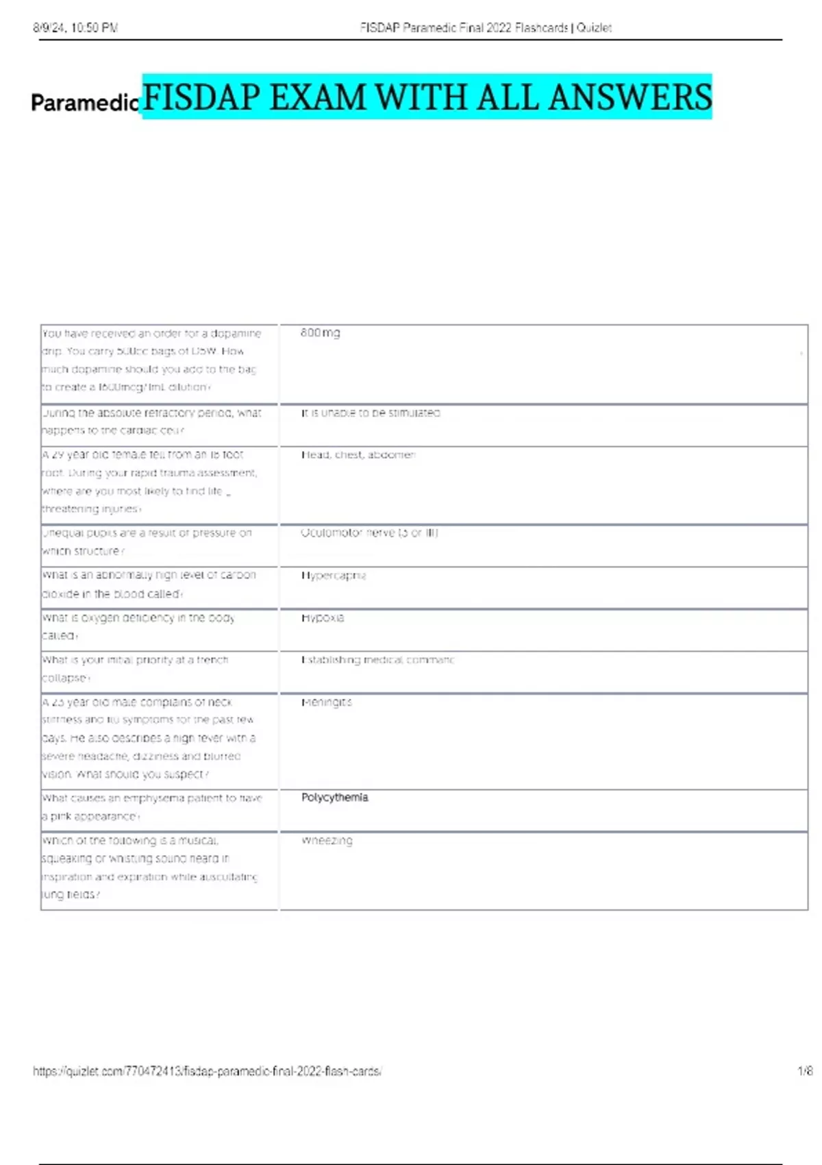 FISDAP EXAM WITH ALL ANSWERS