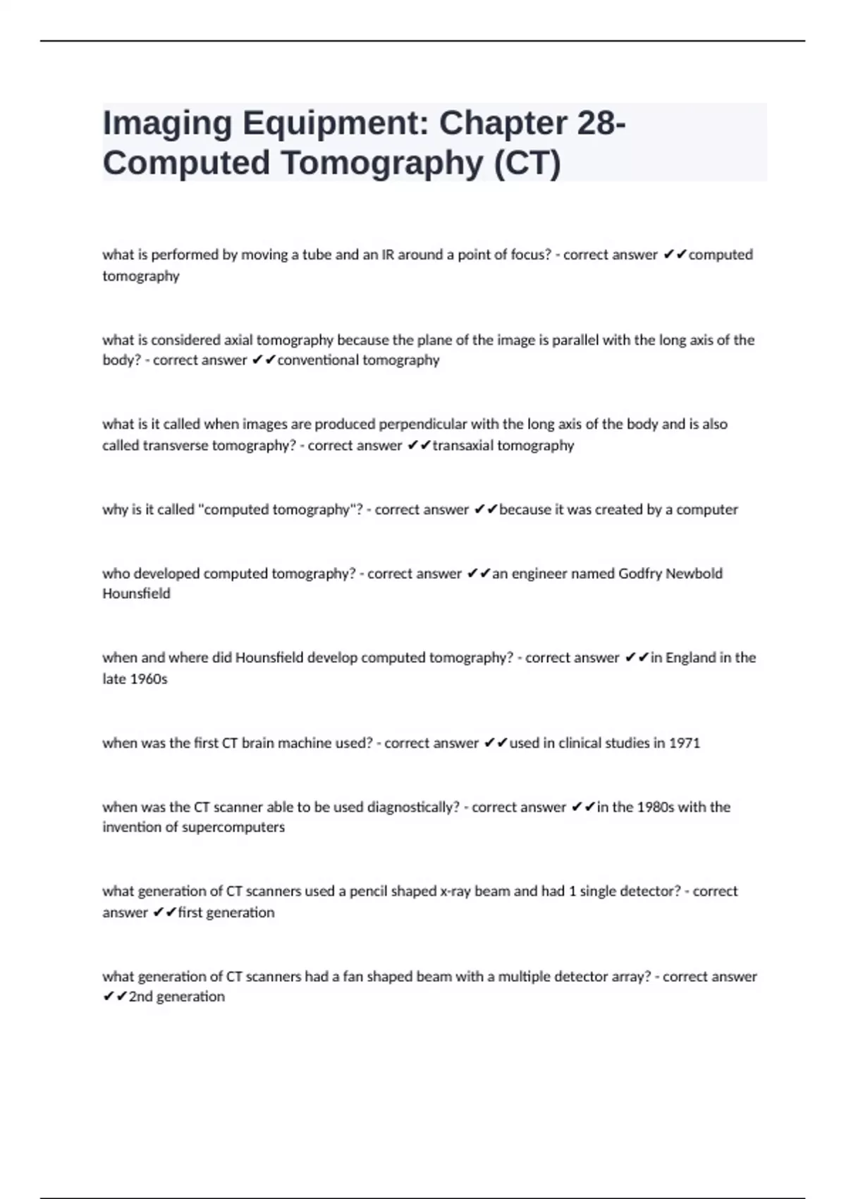 Imaging Equipment: Chapter 28- Computed Tomography (CT) fully solved