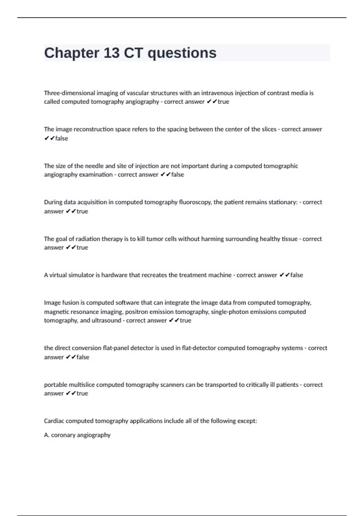 called computed tomography angiography - correct answer ✔✔true