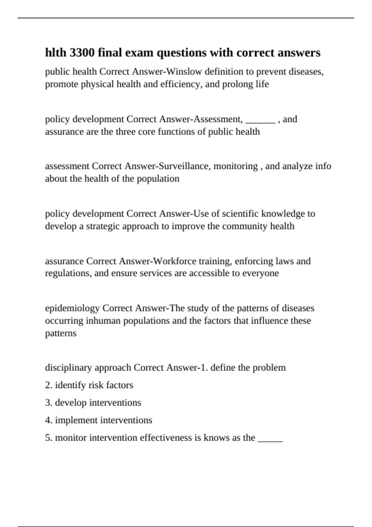 public health Correct Answer-Winslow definition to prevent diseases,