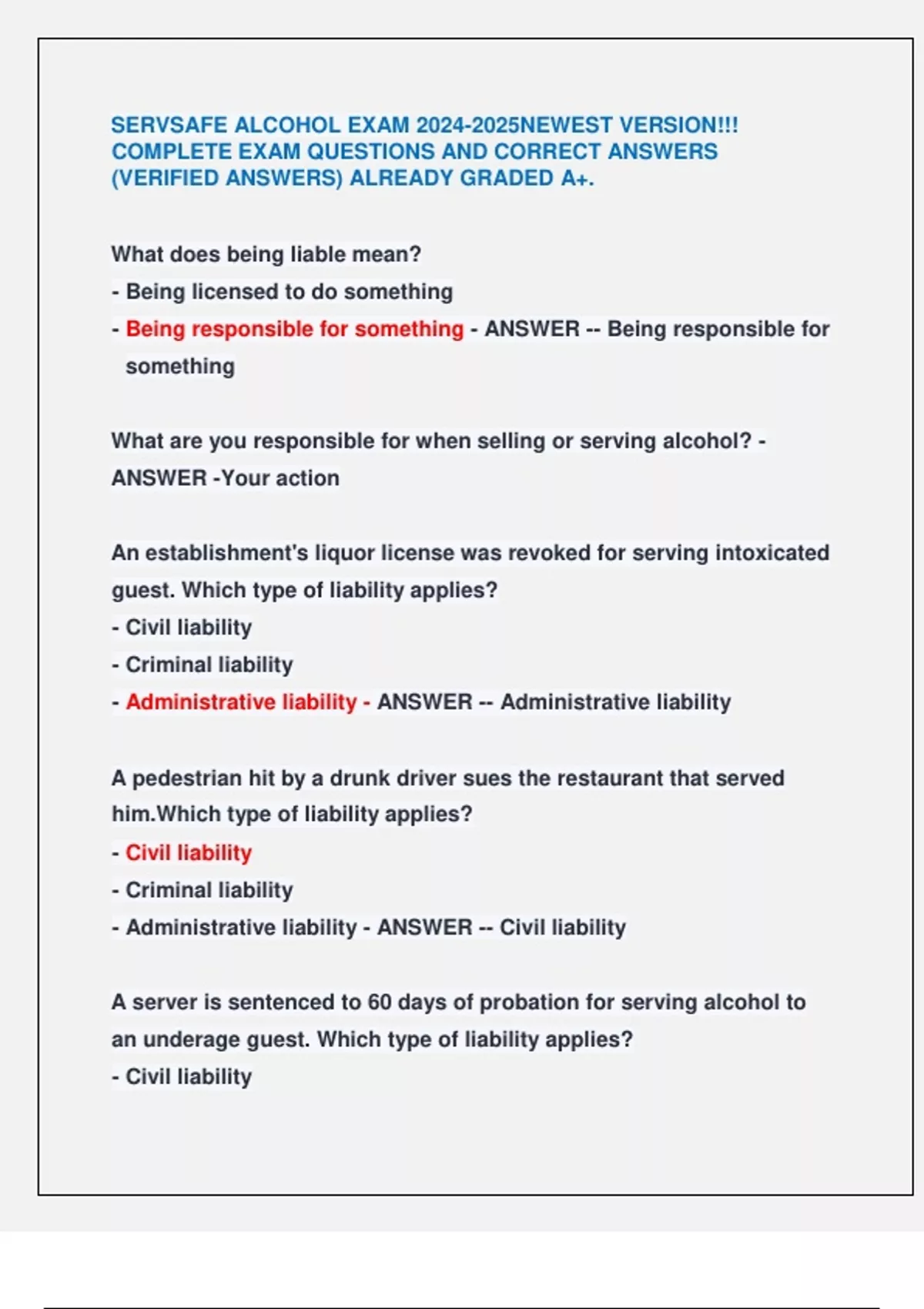 - Administrative liability - ANSWER -- Criminal liability