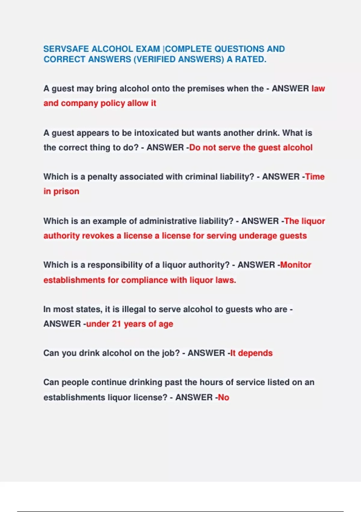 the correct thing to do? - ANSWER -Do not serve the guest alcohol
