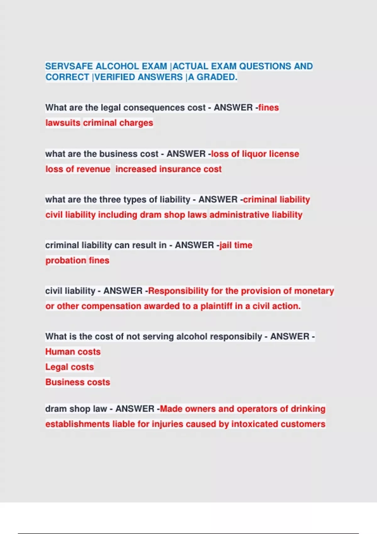 What is the cost of not serving alcohol responsibily - ANSWER -