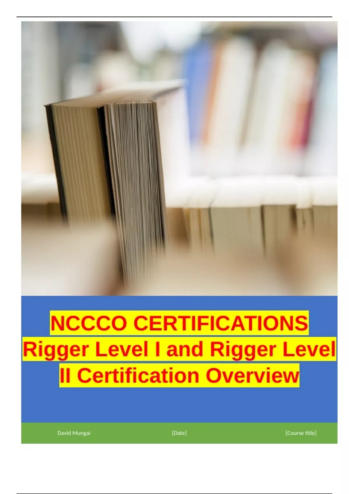 NCCCO CERTIFICATIONS Rigger Level I and Rigger Level II Certification Overview