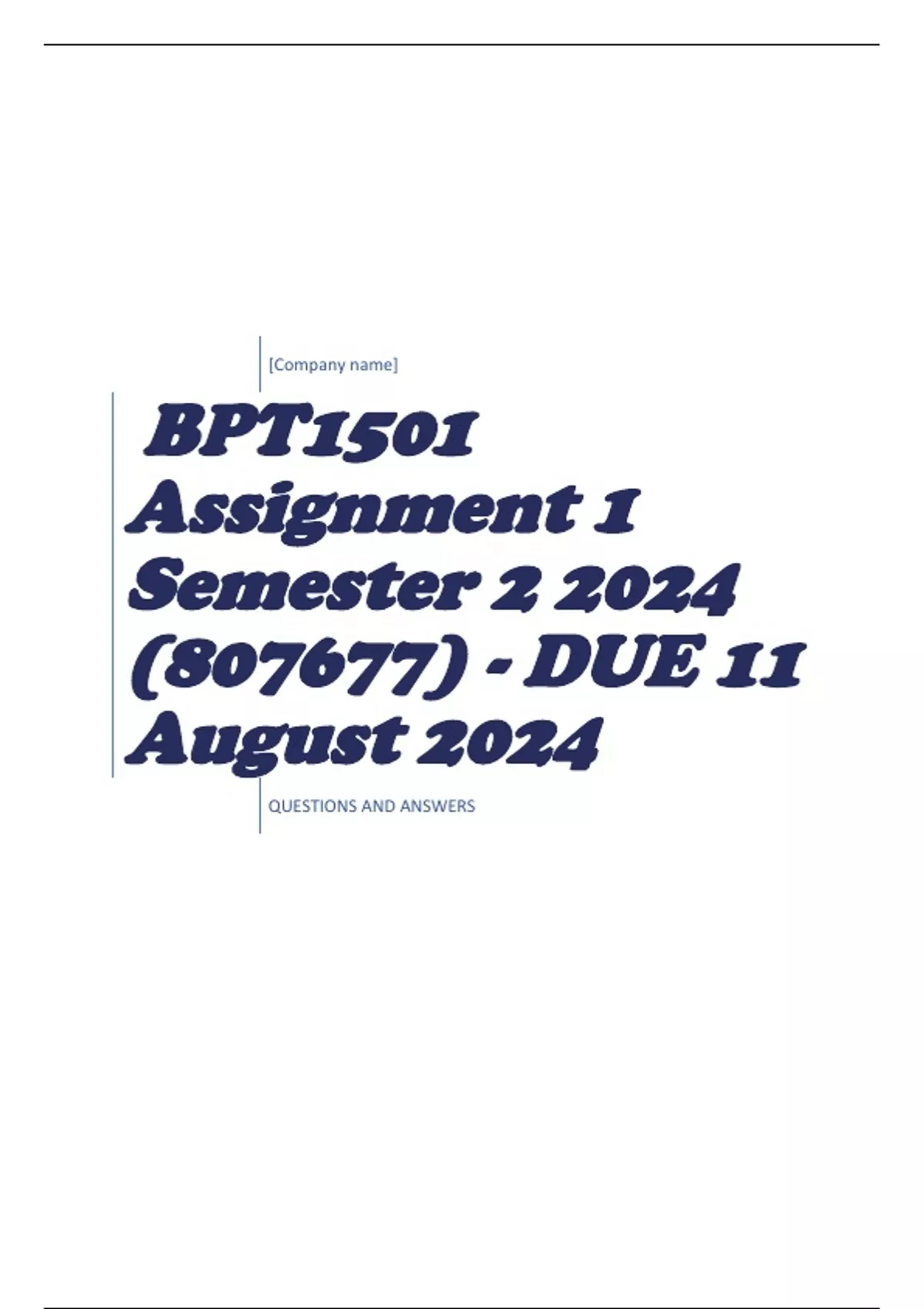 BPT1501 Assignment 1 Semester 2 2024 (807677) - DUE 11 August 2024 QUESTIONS WITH COMPLETE ANSWERS