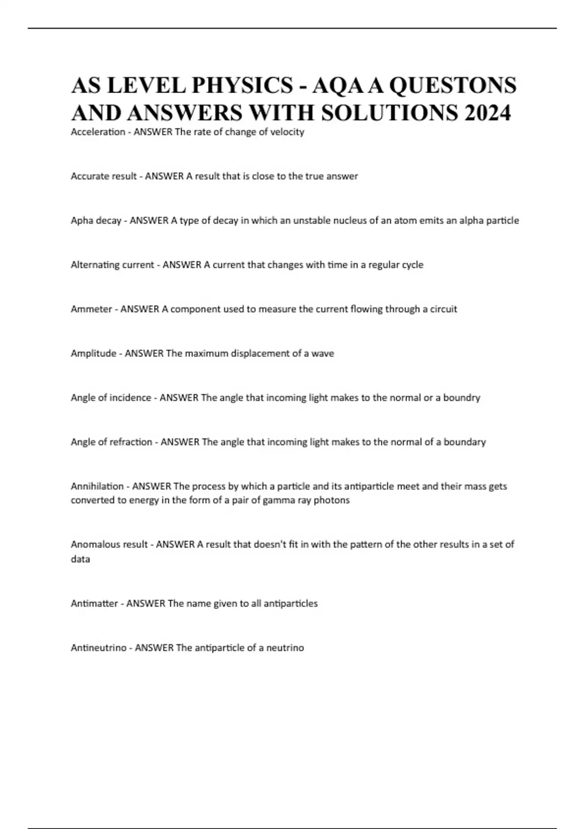 AND ANSWERS WITH SOLUTIONS 2024
