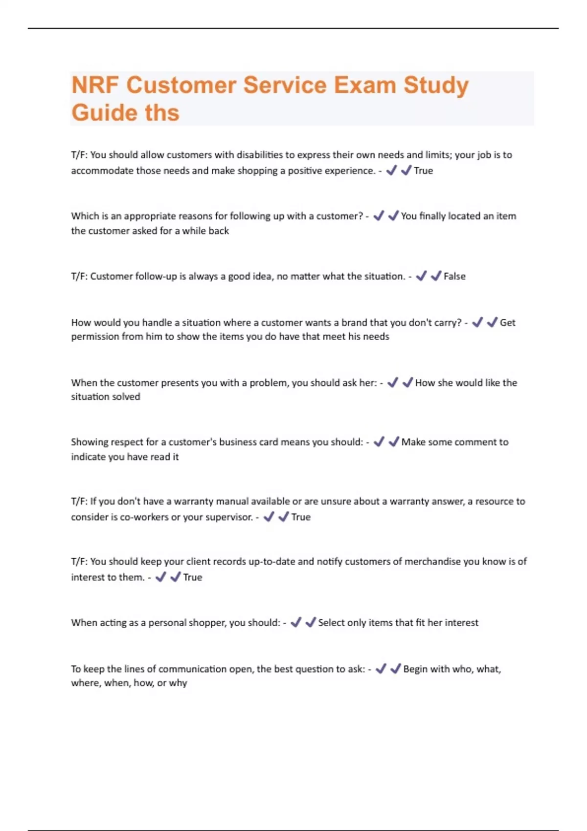 NRF Customer Service Exam Study Guide ths Questions and answers