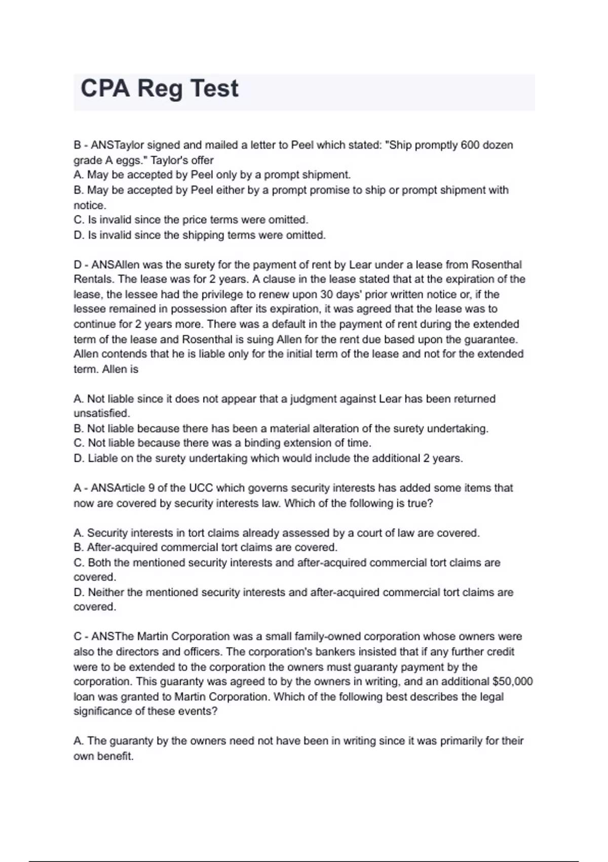 CPA Reg Test questions and answers rated A+ 2024/2025