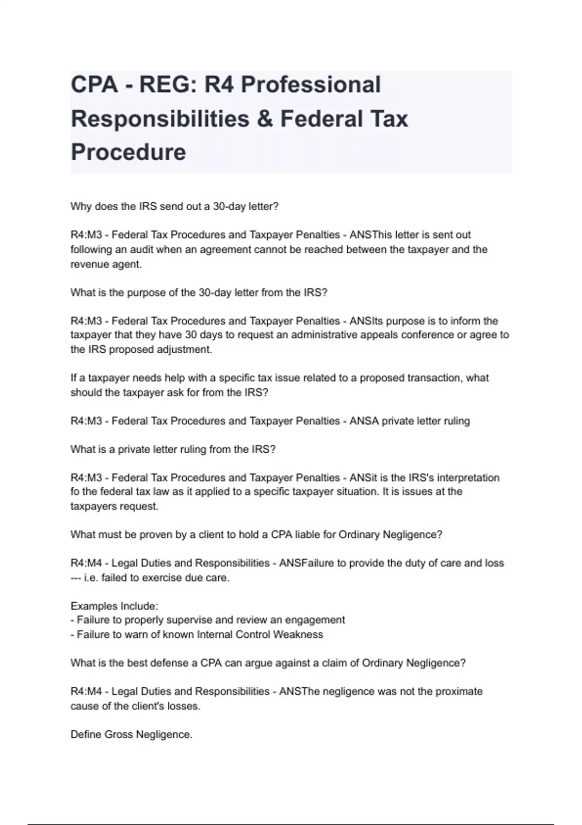 R4:M3 - Federal Tax Procedures and Taxpayer Penalties - ANSThis letter is sent out